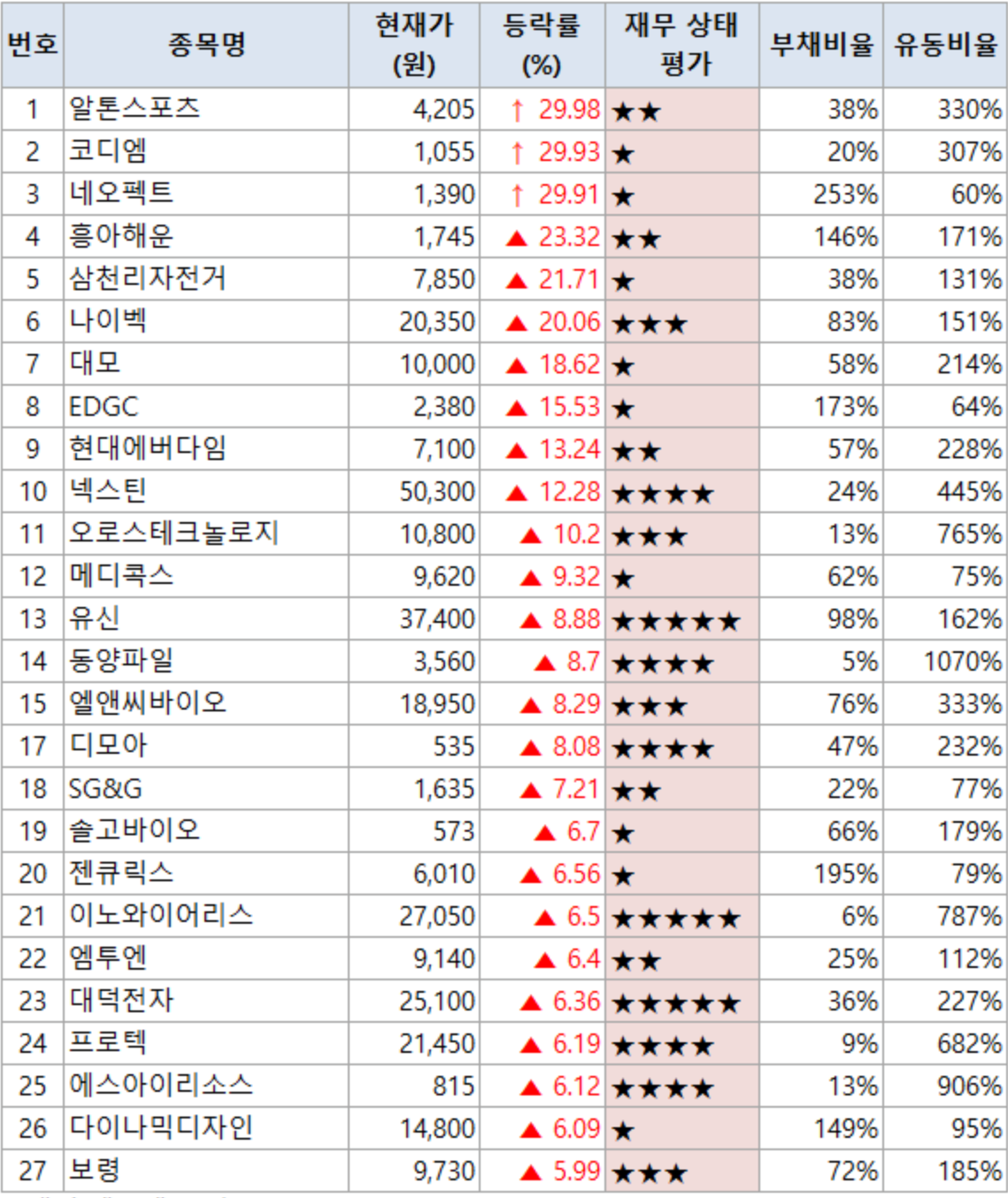 상한가를 기록한 종목들의 이유를 한번 확인해 보겠습니다.