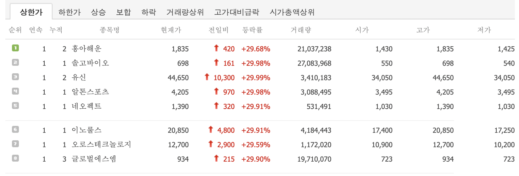 오늘은 이렇게 상한가 종목에 대해 알아보았습니다.