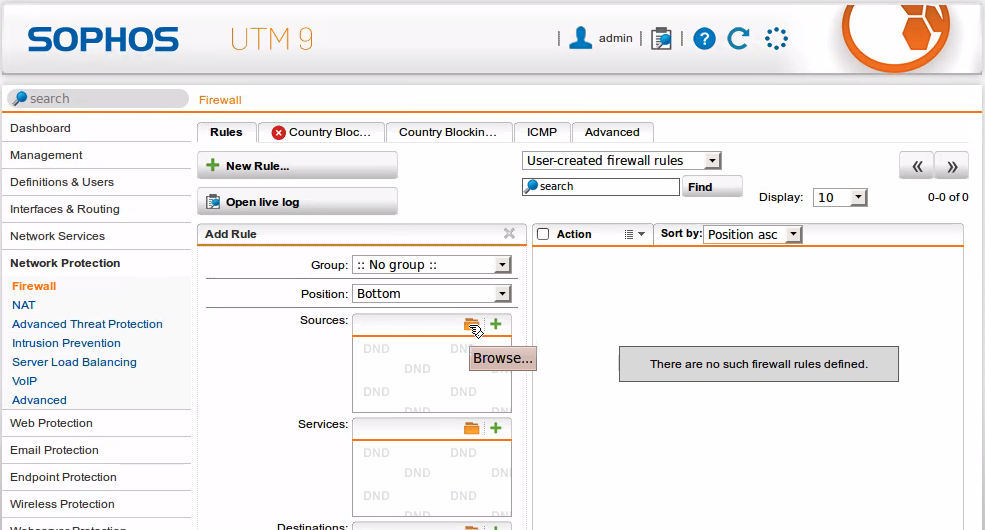 - dashboard -> network protection -> firewall