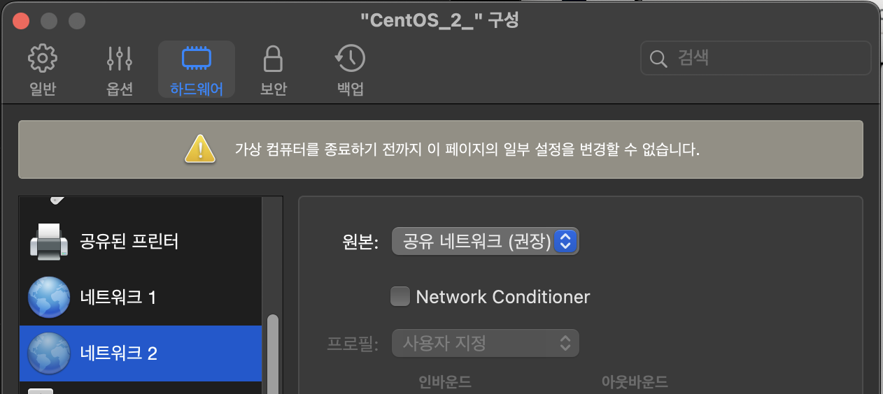 - 호스트 온리로 네트워크 카드 2개로 잡아놓고