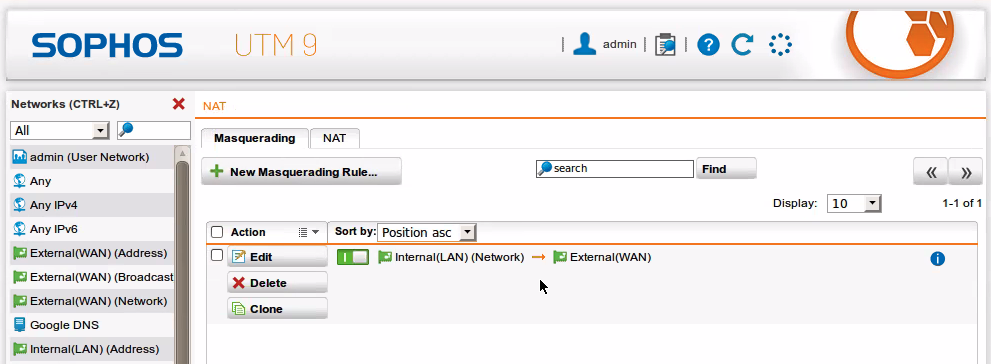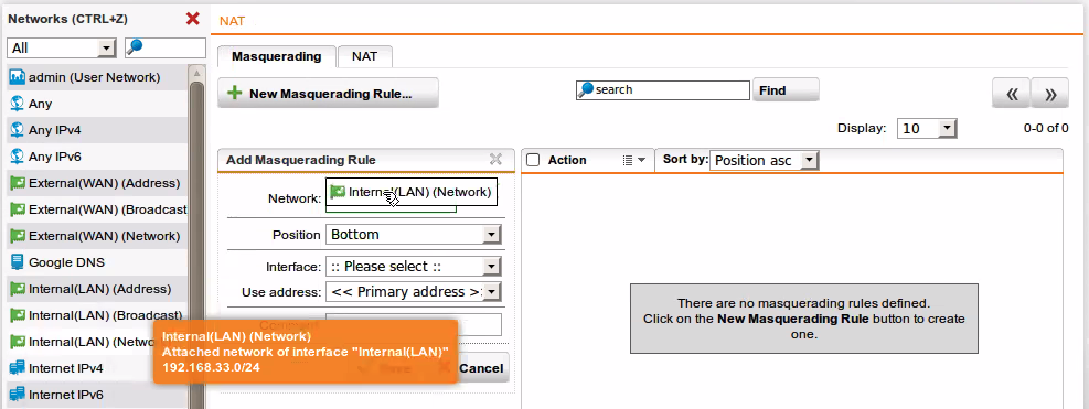 - New masqueradiong Rule을 클릭하여 네트워크