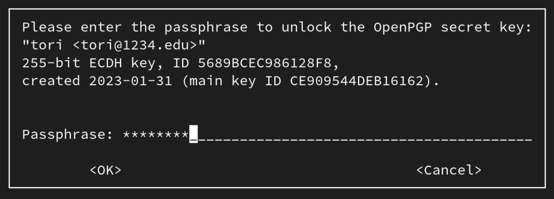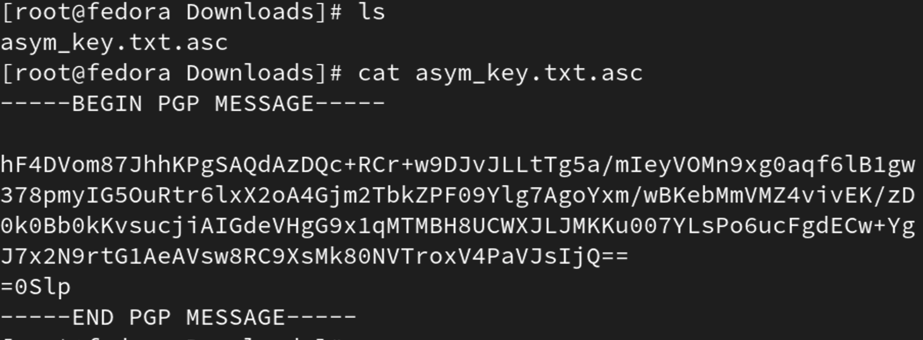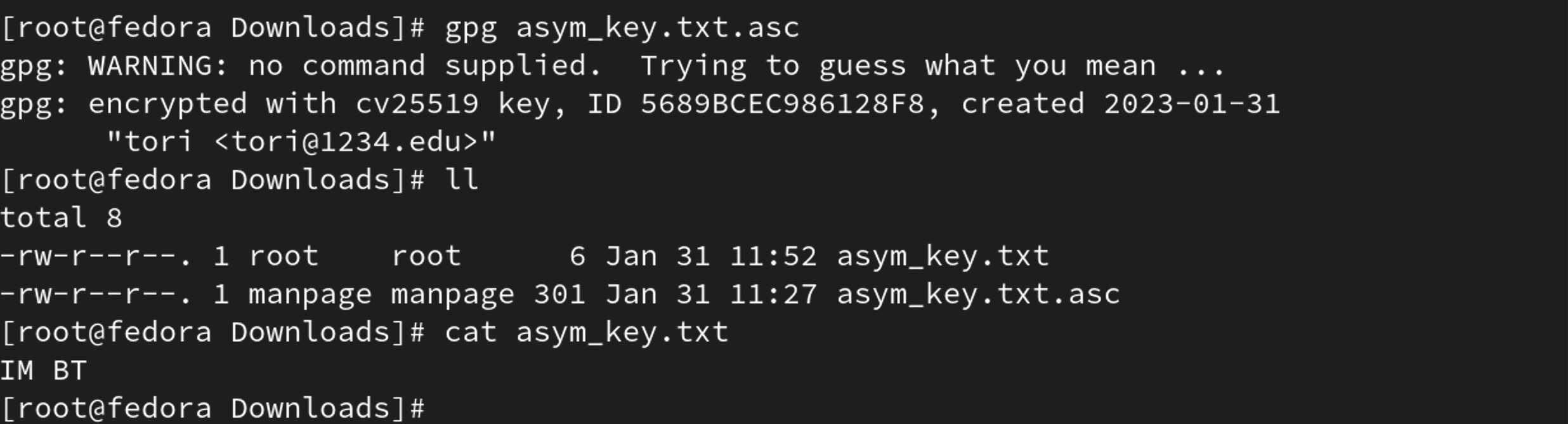> gpg -a -e -r tori@1234.edu --encrypt asym_key.txt