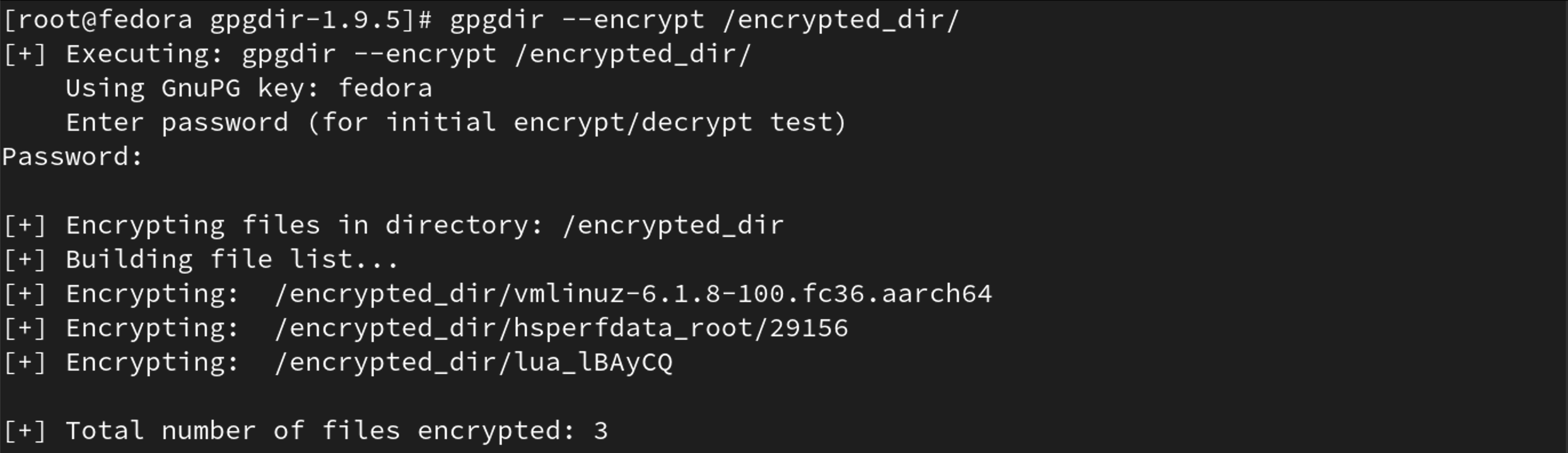 Linux에서는 일부 소프트웨어적인 방법을 사용하는데 gPgdir 도구가 대표적이다. 이 도구로 재귀적으로 디렉터리 암호화와 복호화를 수행해 보자. gpgdir encrypt ~로 암호화 하고, gpgdir -decrypt ~로 복호화한다.