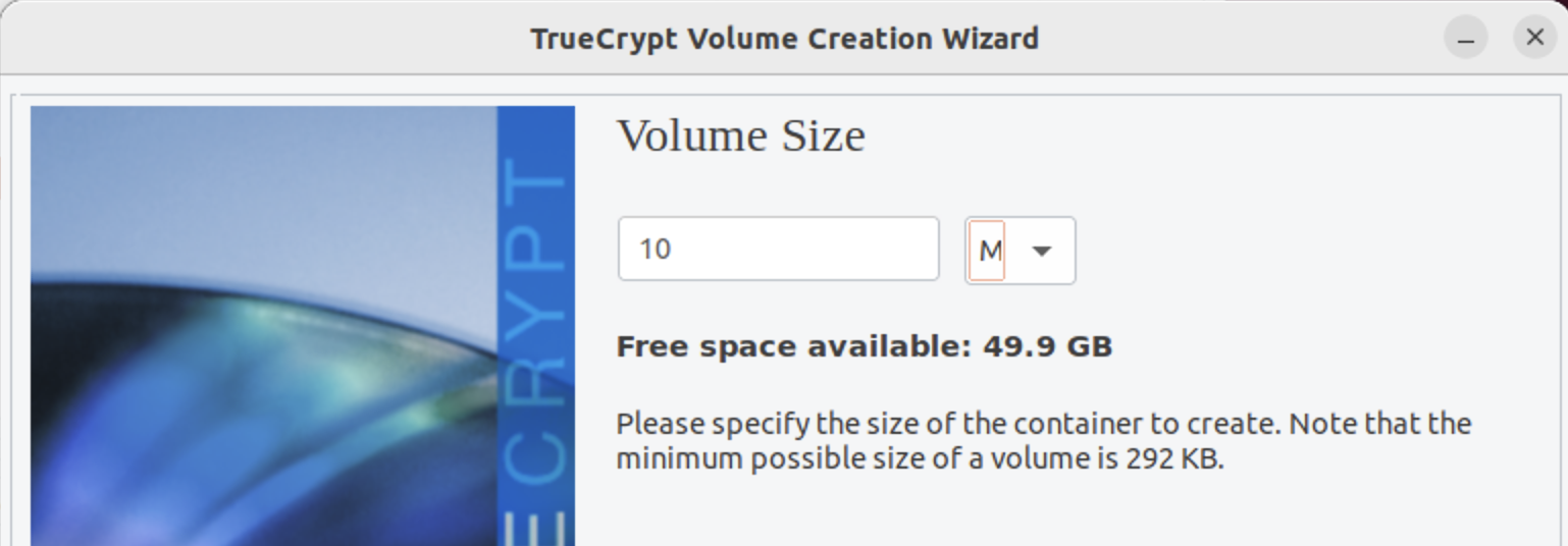 - 암호화될 볼륨의 이름과 볼륨(크기)을 정한다.