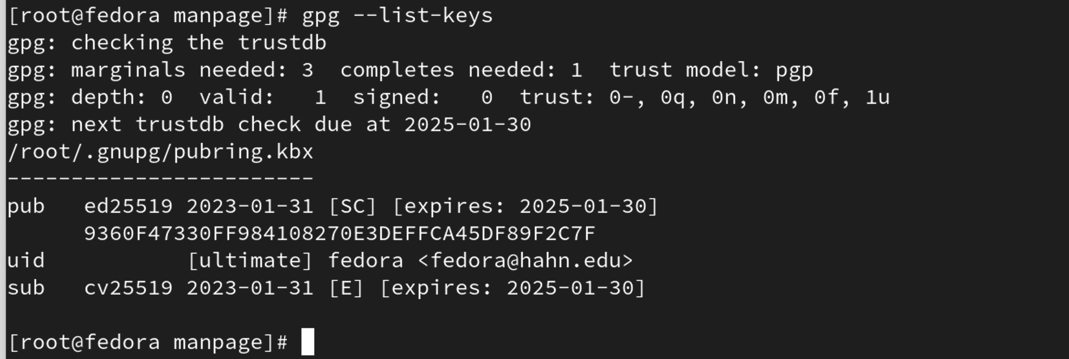 > gpg -o fedora.pub -a --export fedora@kahn.edu