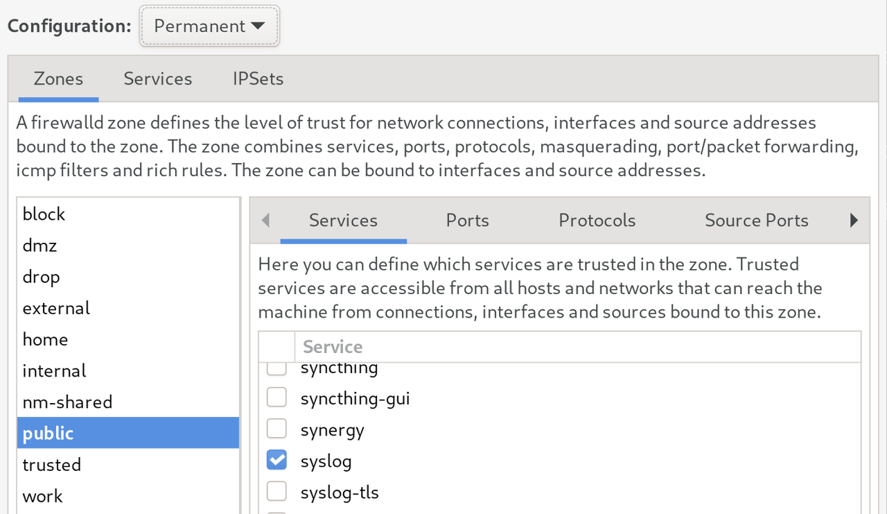 firewall-cmd --permanent --zone=public --add-service=rsyslog --add-port=514/udp