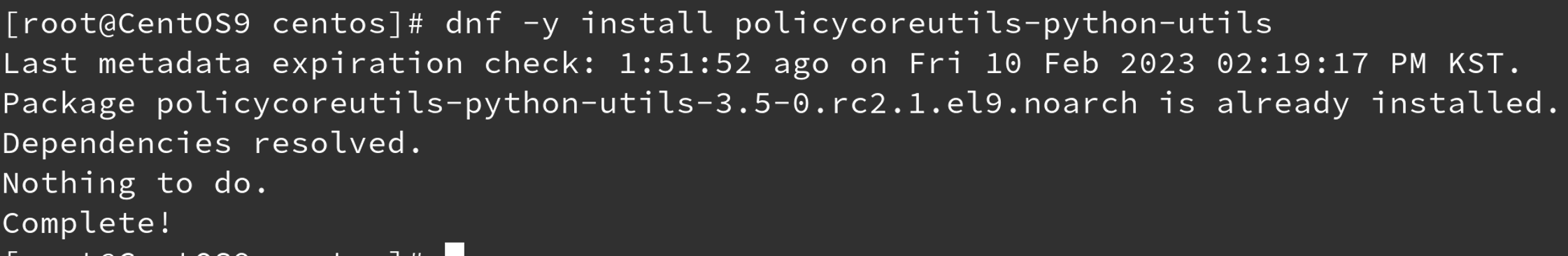- semanage 명령을 하였을 때 아래와 같은 에러가 발생한다면, semanage를 설치