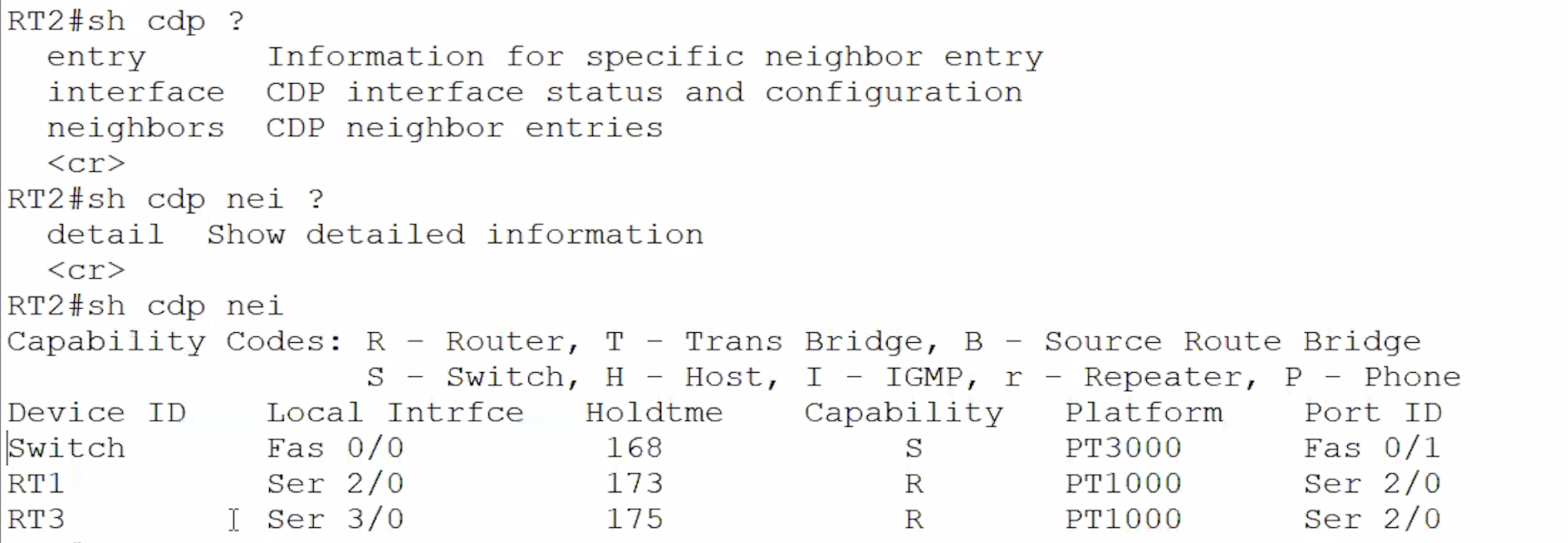 - sh cdp ? 를 통해 연결된 시스코 장비를 확인할 수 있다.