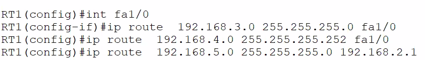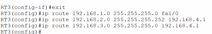 RT3 (config)#ip route 0.0.0.0 0.0.0.0 fa0/0