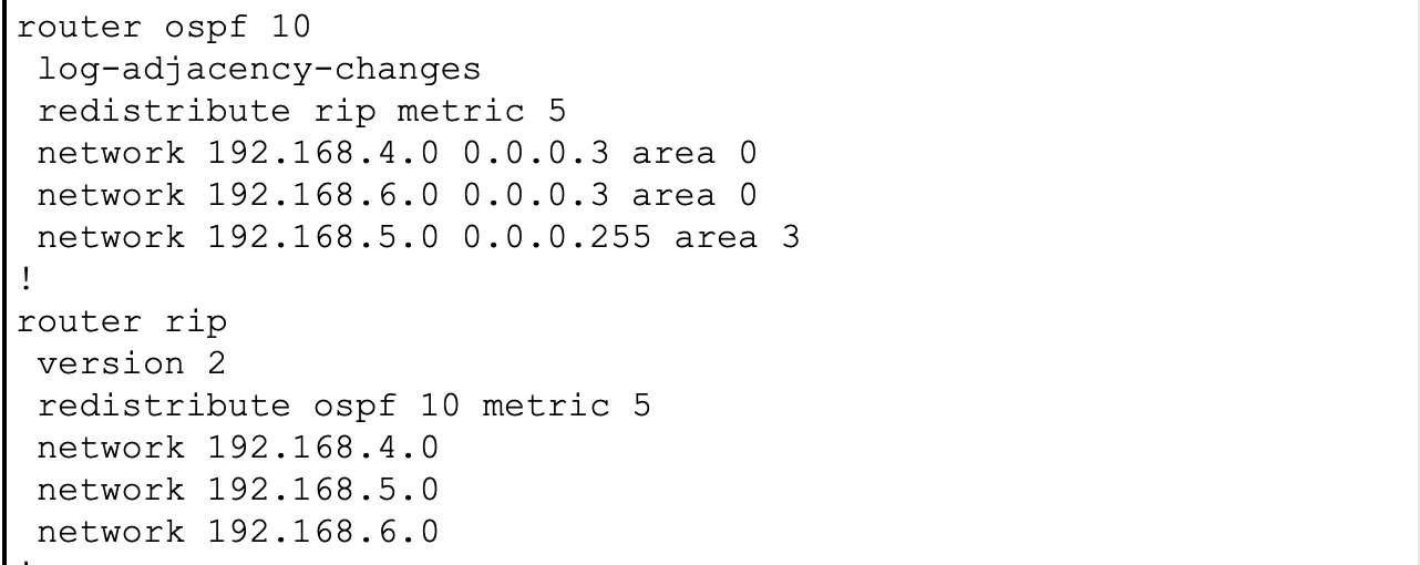 - RT3에서 좌측의 OSPF와 우측의 RIP 프로토콜이 만나는 지점 이어 서서로 상대방을 인식하도록 설정