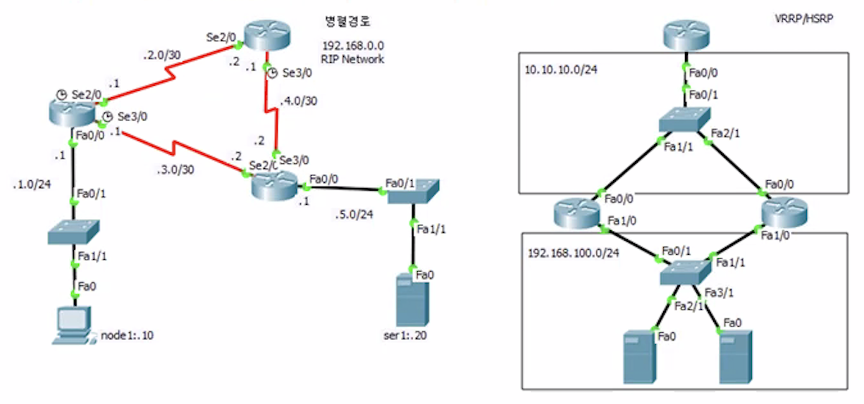 ==> 여기서 주의할 점은 RIP Distance verctor와 OSPF의 링크 스테이크 알고리즘이 다르기 때문에 확인해야 한다.