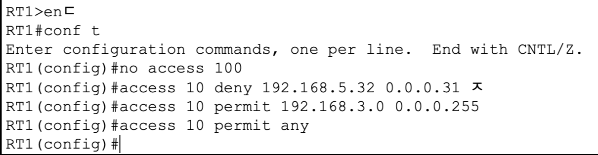 RT(config)#access 100 deny tcp [규제 범위]
