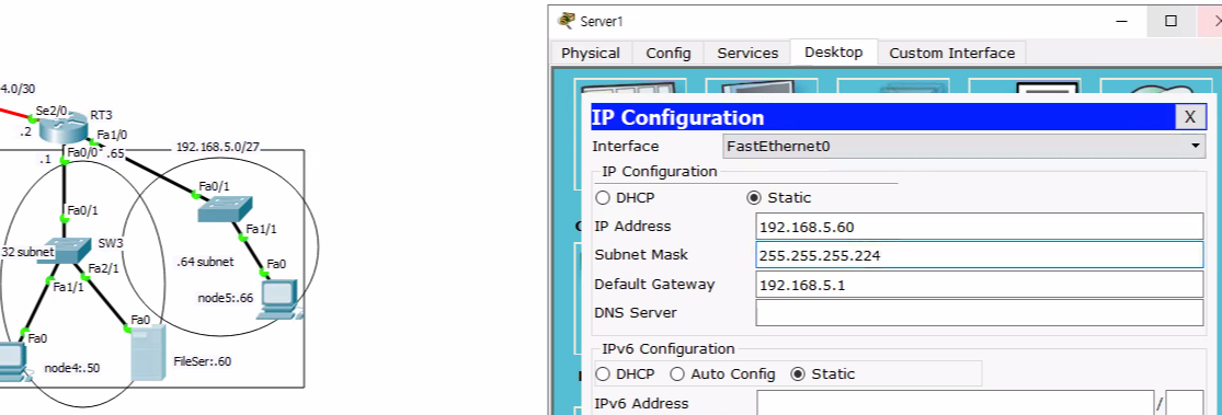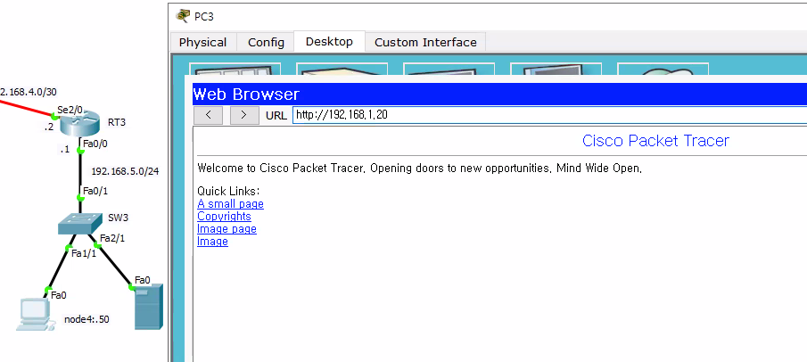 - 192.168.5.0의 노드들은 192.168.1.20 웹 서버의 FTP,WWW 서비스와 Telnet을 이용 할 수 있다. (Telnet은 3에서 추가 실습)