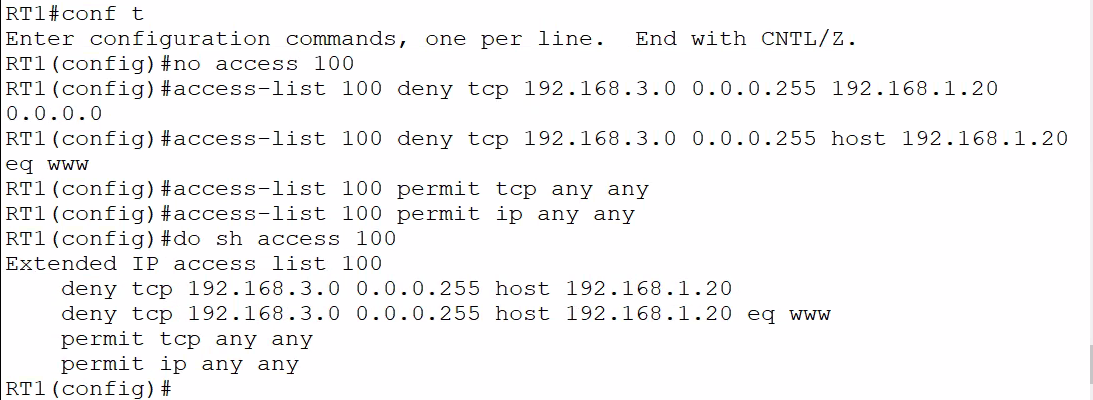 RT(config)#access 100 permit tcp any any