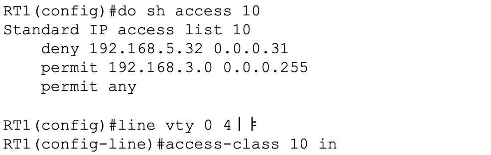 RT (config-line)#access-class 100 in
