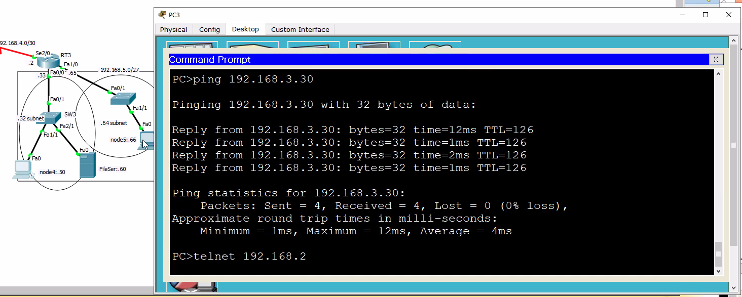 -node 2와 4의 PC의 경우 연결이 되는 것을 확인할 수 있다.