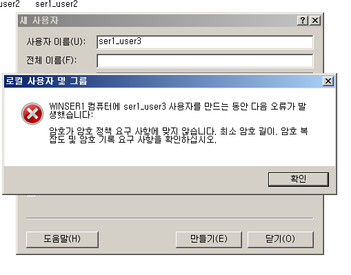 - 암호 정책에 의해 간단한 PW로는 작성할 수없다