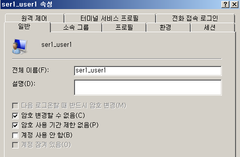- 이때, "다음 로그온할 때 반드시 암호 변경"으로 할 경우 새로운 USER를 추가하거나 비밀번호를 초기화한 이후 user가 비밀번호를 바꿔 사용할 수 있다.
