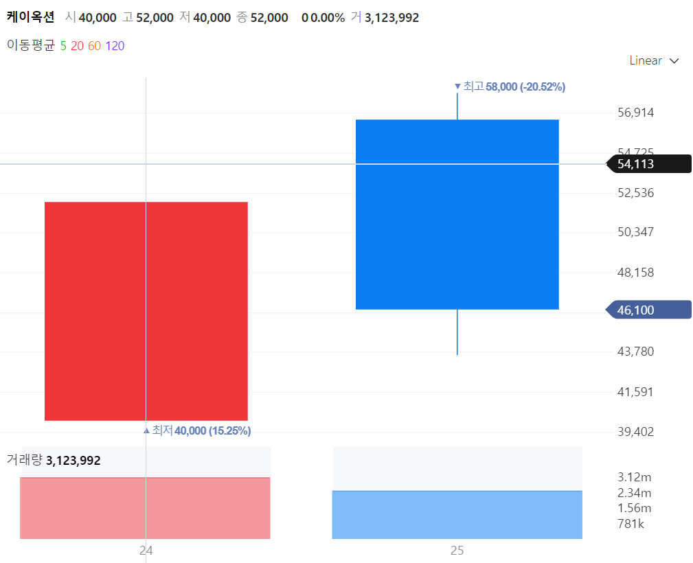최고 58,000원까지 기록하였다.