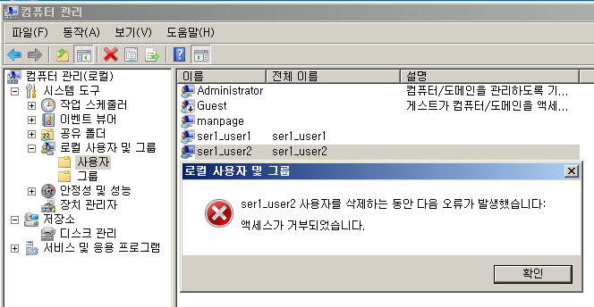 - 관리자가 아닌 일반사용자 manpage가 다른 사용자를 지우려고 한다면 불가능하다.