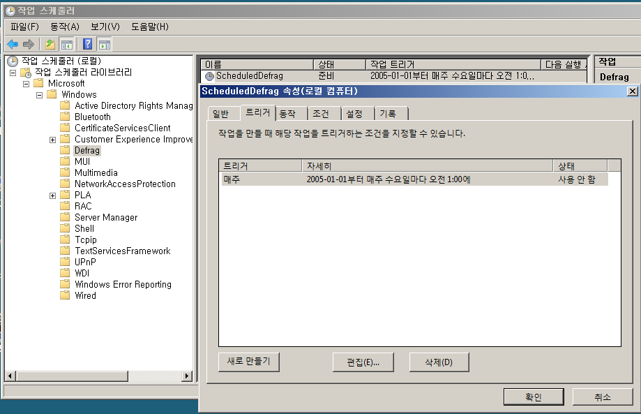 - Defrag - 로컬 컴퓨터 - 새 트리거 작성하여 작업을 만듦