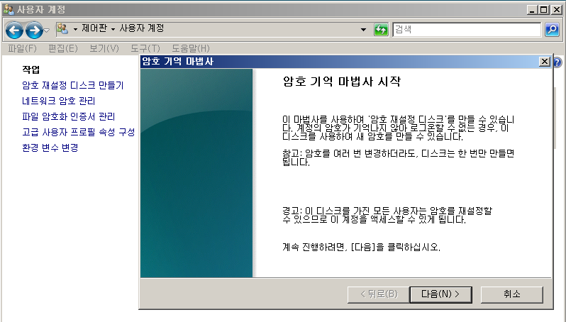 - 암호 재설정하기 위한 디스크 만들기