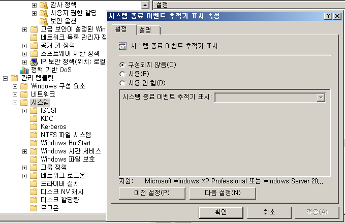 [+] 시스템 종료 이벤트 추적기 표시 속성