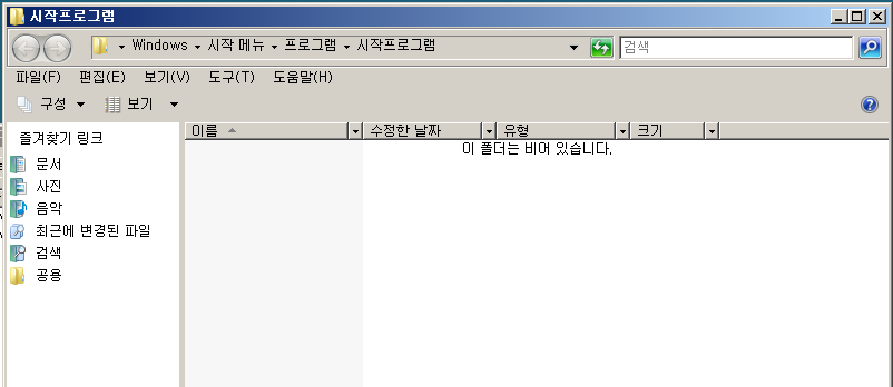 - [시작] -> [모든 프로그램]-> [시작프로그램]