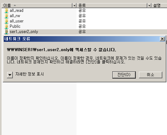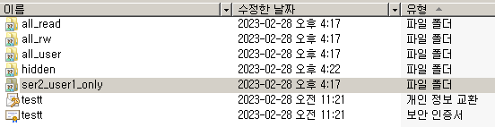 - ser1_user2폴더는 보이기는 하지만 폴더 접근 불가