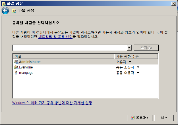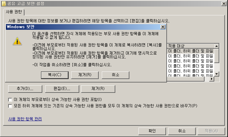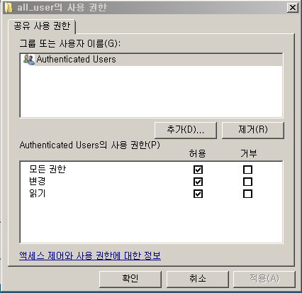 2. NTFS의 공유 폴더 권한 및 파일 권한