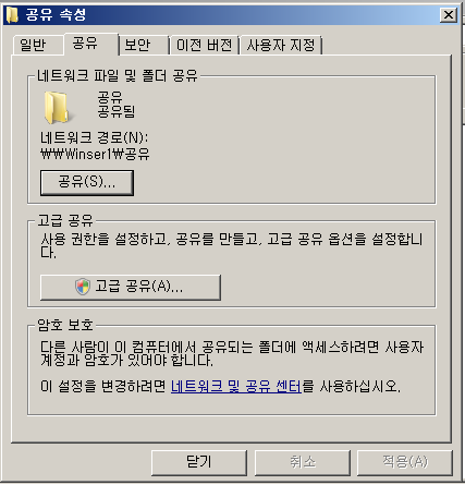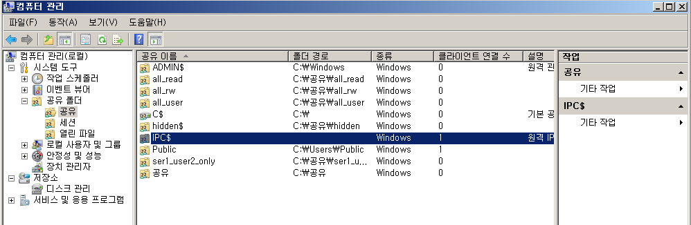 - 위치 : 시작-관리도구-컴퓨터 관리-공유폴더-공유