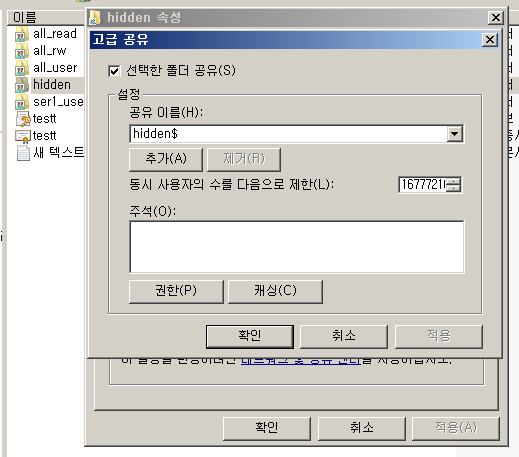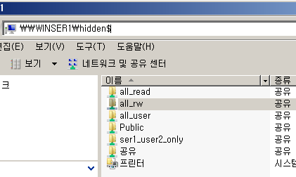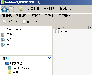 - 공유 시 뒤에 달러($)를 입력하면, 폴더의 존재를 아는 사람만 접속 가능(리스트에는 보이지 않는다.)