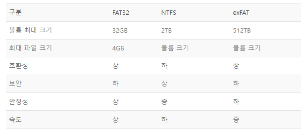 **NTFS보다 FAT의 장점?? 다른 OS와 호환성이 좋고(MAC의 경우 인식이 되지 않음)