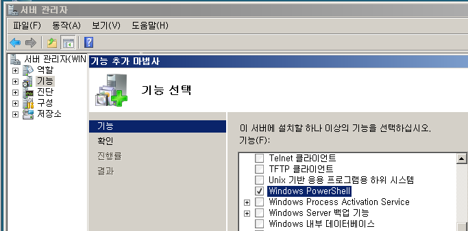 - 서버 관리자 - 기능 추가 - windows PowerShell 체크