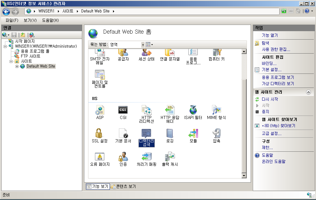[+] IIS관리자 - 디렉터리 검색 - 사용 및 원하는 내역 적용