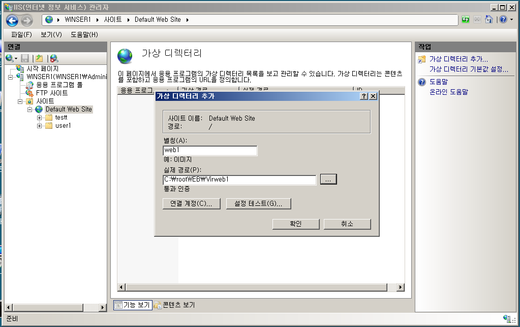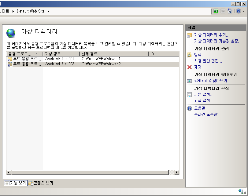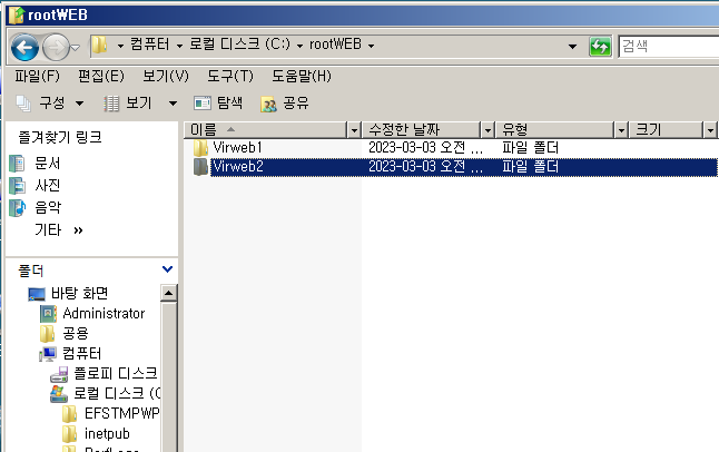 - C:\에 rootWEB1,2폴더를 만들고 각각 폴더를 생성