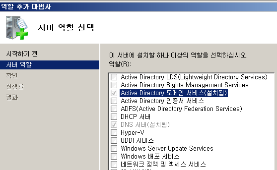 - [서버 관리자] - 역할 - AD 도메인을 선택하여 기능 추가