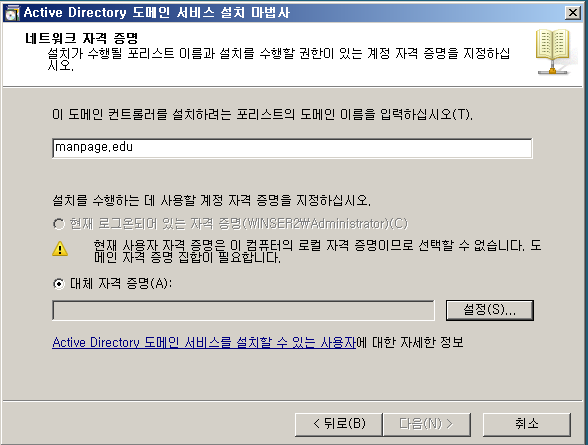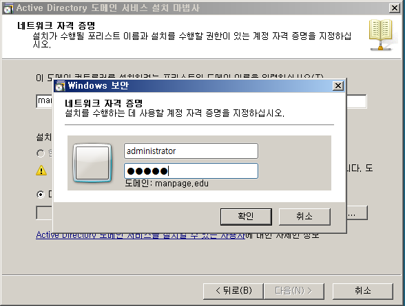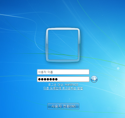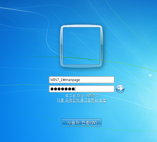 - 도메인(MANPAGE)과 로컬(WIN7_1)로 각각 로그인할 수 있다.