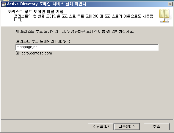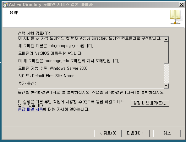 - Windows 로컬 서버 머신을 도메인 컨트롤러로 변경해서 서울 본사(manpage.edu)와 부산 지사(mia.kahn.edu) 간의