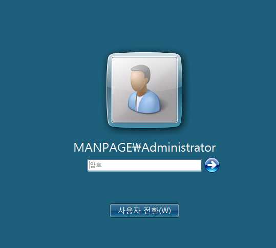 - 설치가 완료되면 리부팅 후 아래와 같은 manpage\administrator으로 아이디가 변경된 것을 확인할 수 있다.