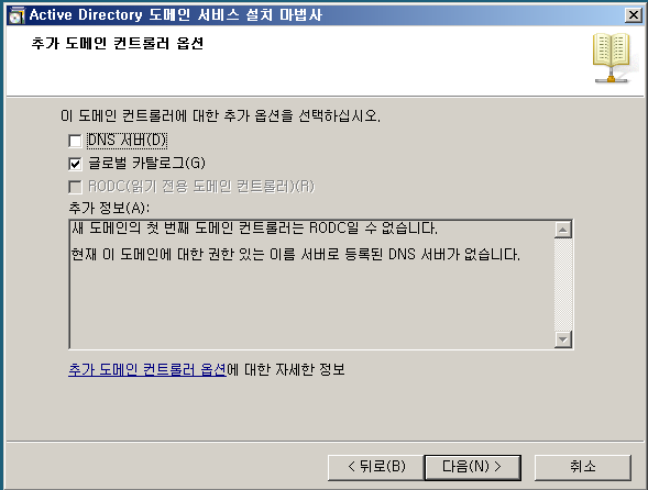 [+] 추가 도메인 컨트롤러 옵션