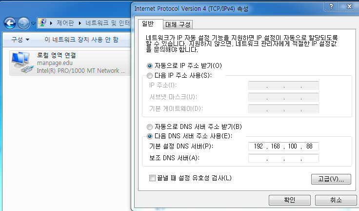 - 설정 시 DNS서버를 ser1으로 지정하여 작업