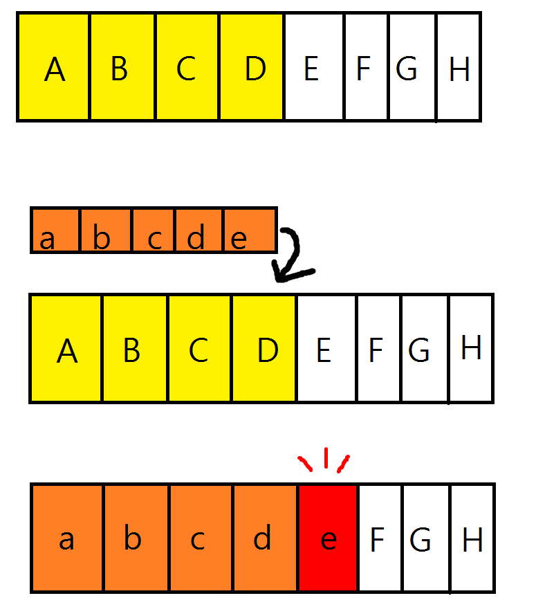 ==> 할당된 공간보다 넘치게 값을 입력하는 것(덮어쓰기)으로 악의적인 코드가 실행
