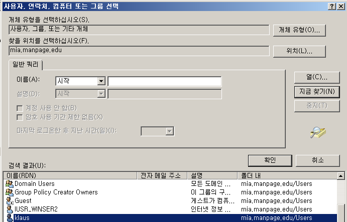 <= 자원과 그룹, 사용자 문제가 있을 때 급하게 편하게 처리하느라고 이들을 글로벌 그룹으로 만들어 두는 경우가 있는데 반드시 나중에 제대로 조절해 두어야 한다!!! 신중히 생성하고 사용되어져야 한다.