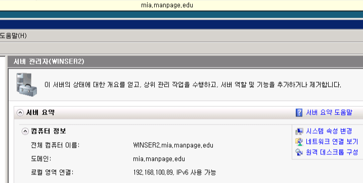 - WINSER1(manpage)서버에서 WINSER2(mia)서버의 이벤트 뷰어를 확인할 수 있다.