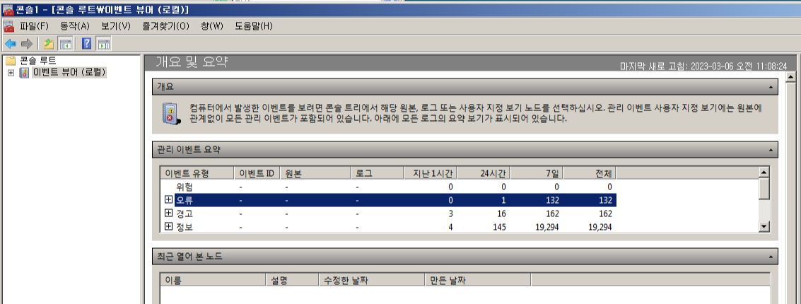 [+] 이벤트 뷰어 확인