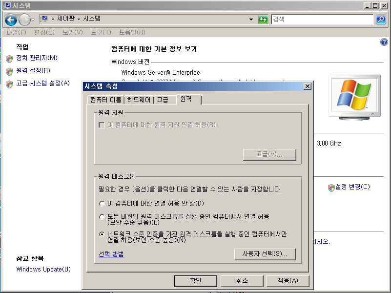 - 제어판- 시스템 -원격