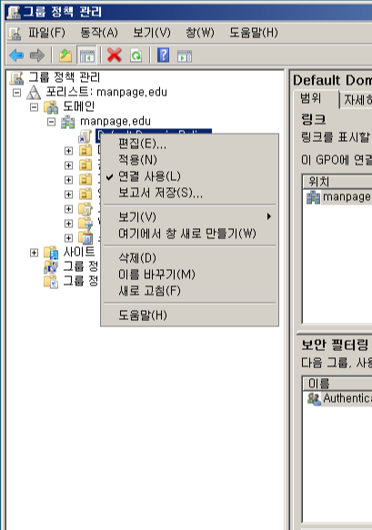 - 그룹 정책 관리에서 [편집] - 을 선택하여 설정
