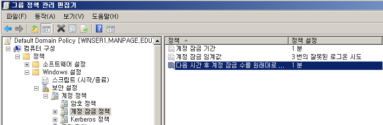 ** 암호 정책 문제 발생시 정책 업데이트(gpmc.msc)
