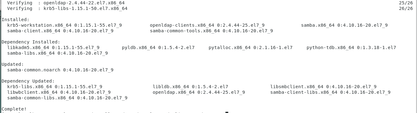 - yum -y install samba samba-doc samba-common samba-client samba- domainjoin-gui samba-common-tools oddjob krb5-workstation openldap-clients policycoreutils-python